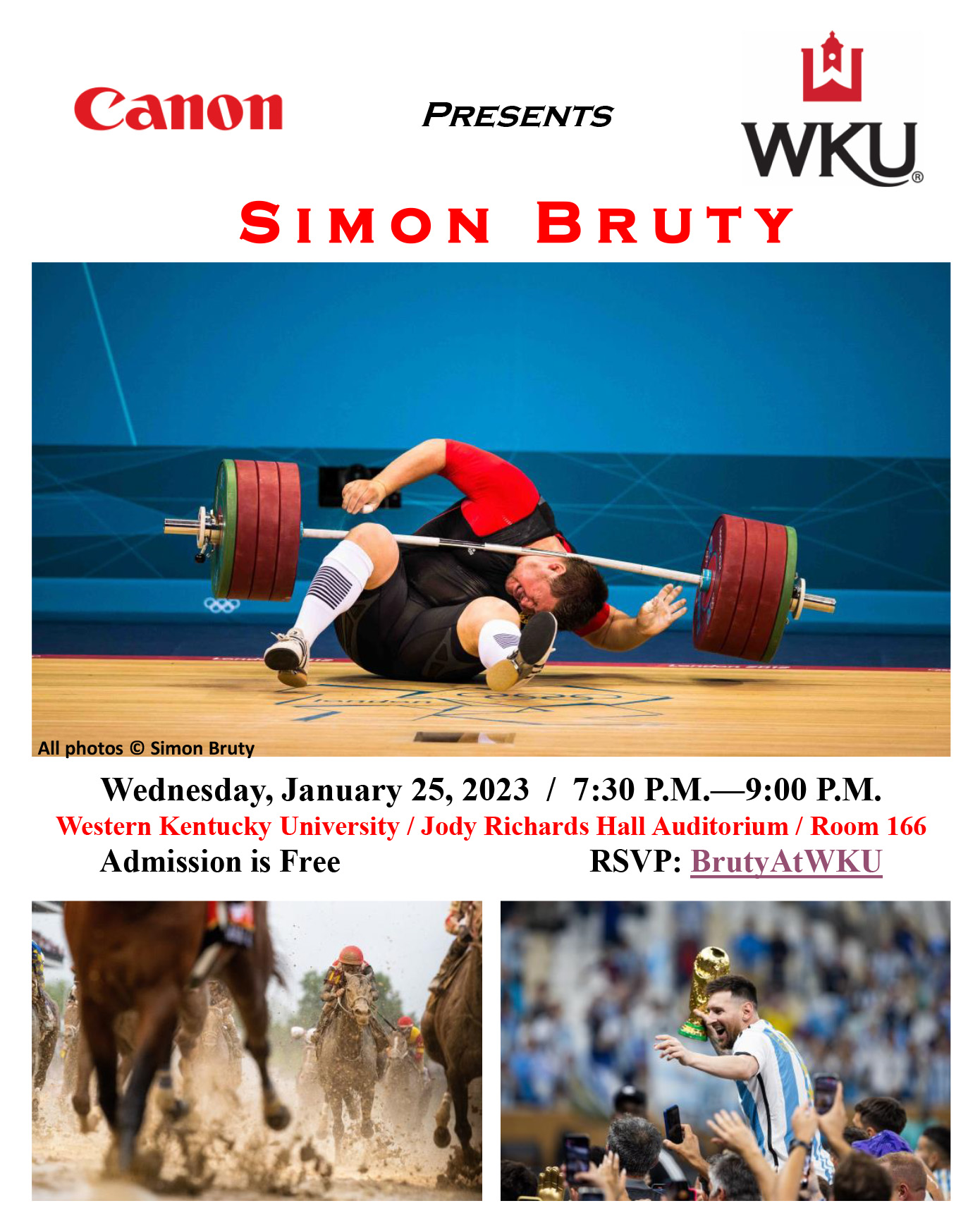 Come and see images that have defined the sports world for the past three decades as photographer Simon Bruty presents work at Jody Richards Hall Auditorium Wednesday, January 25 at …